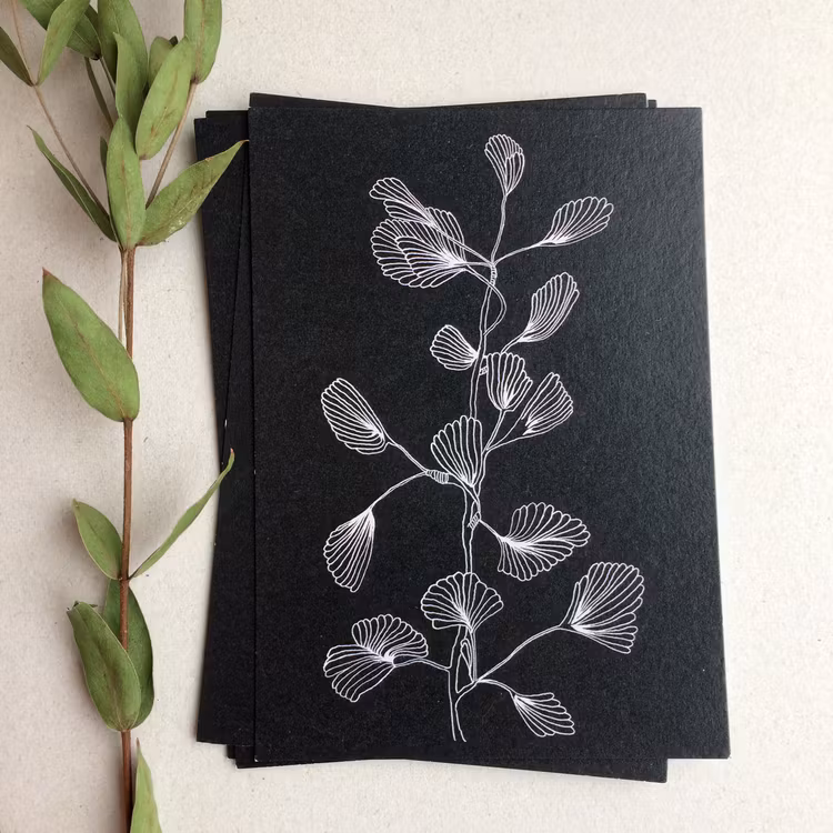 Ginkgo 20 kr Produkten är tyvärr slut i lager. Artikelnummer: 266 Vykort i A6-format.Baksida i svartvitt.